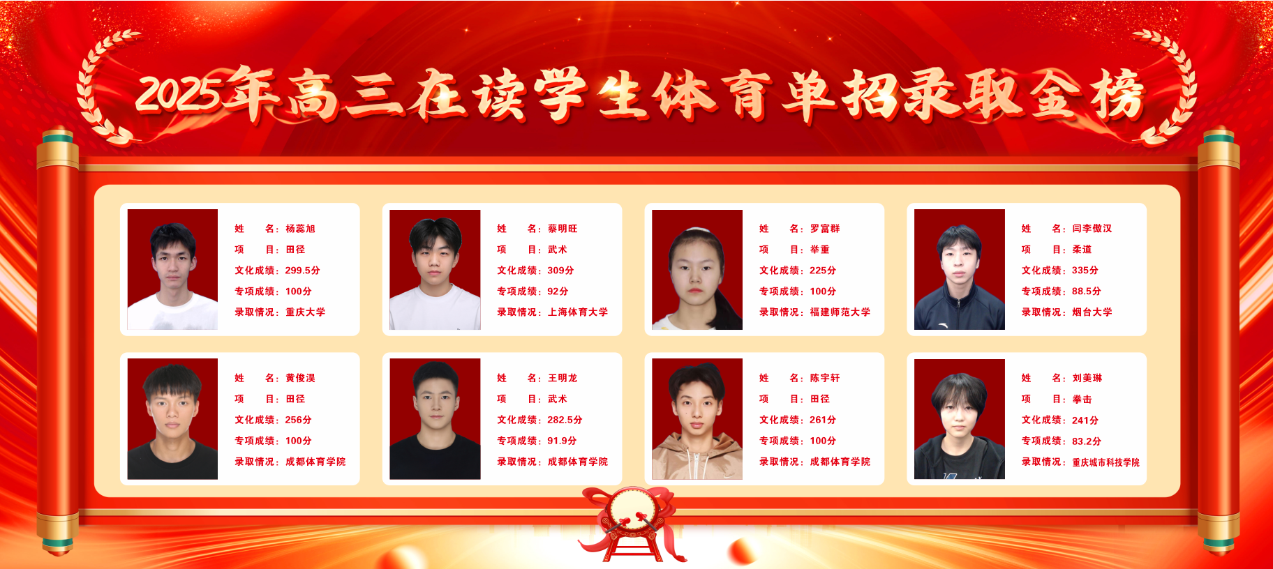 2025年高三在读学生体育单招录取金榜