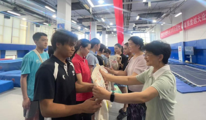 按照学院党委夏训备战“突转化”重点工作要求,跳水项目出线运动员将于8月28日赴西安与陕西队、上海队进行赛前模拟实战测试赛。为缓解运动员高强度备赛期间的紧张焦虑情绪,8月27日上午,系班子成员赴跳水陆上训练房,向全体即将出征的运动员亲手送上由学院训练处体科心中心心理训练工作室副主任曾莲子精心筹备定制的“心理调试包”。运动员接收后反响积极,纷纷表示“这些物件实用性强,训练疲惫或情绪紧张时可随时使用,有效增强了备赛底气”。此举既落实学院孔庆波院长“精心保障,做到万无一失”的要求,又切实疏解运动员心理压力,营造轻松备战氛围,为跳水队在对西安抗赛测试赛中稳定发挥、展现夏训成果奠定坚实心理基础。